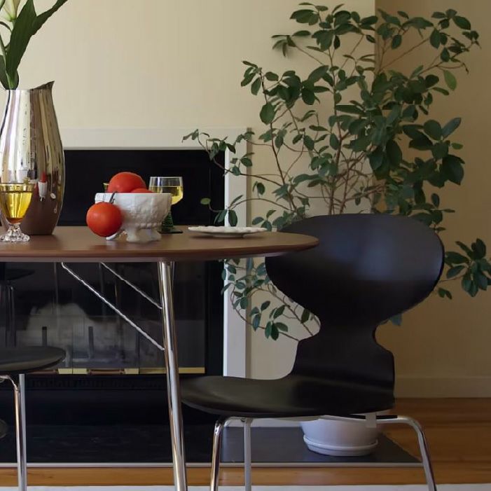 蟻の形を彷彿とさせる背もたれと細い3本のスチール脚の組み合わせは、当時としてはとても斬新なデザインでした。エレガントかつ軽快な印象を与えるアリンコチェアは、コーディネート次第で上品にもカジュアルにも空間の雰囲気を演出してくれます。また、スタッキングできる機能性に加え、その重ねられた佇まいにもヤコブセンのこだわりを感じます。