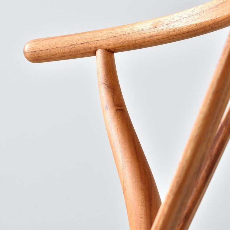 背からアームにかけて美しく一体化したラインと、印象的なY字型の背もたれが特長。