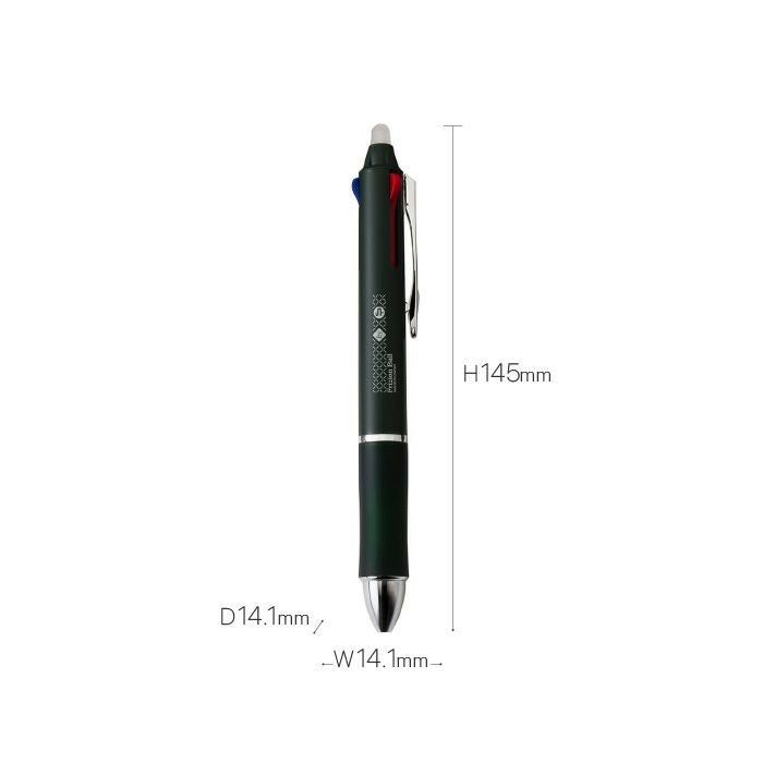 1本で黒・赤・青の3色を使い分けでき、何度でも書き消し可能な利便性の高い3色ボールペの本体色にはCDTブランドカラーであり、日本の伝統色でもある『黒緑(くろみどり)』を用いることで、落ちついた雰囲気を演出。