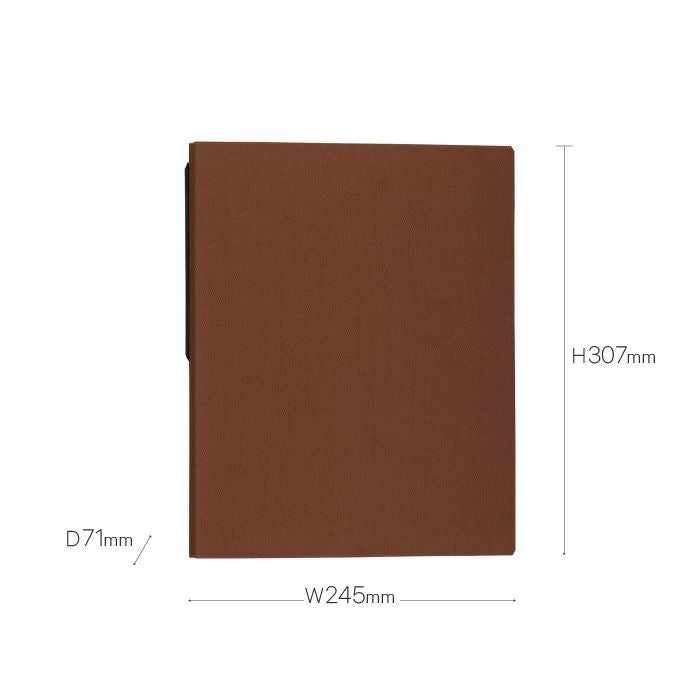 書類を大容量保管する為の2ホールファイル。耐久性にも優れています。落ち着いた風合いは幅広いインテリアに調和します。使い勝手を考え、背には差し替え可能な大き目のインデックスラベルと紙を固定できる金具が付きます。
