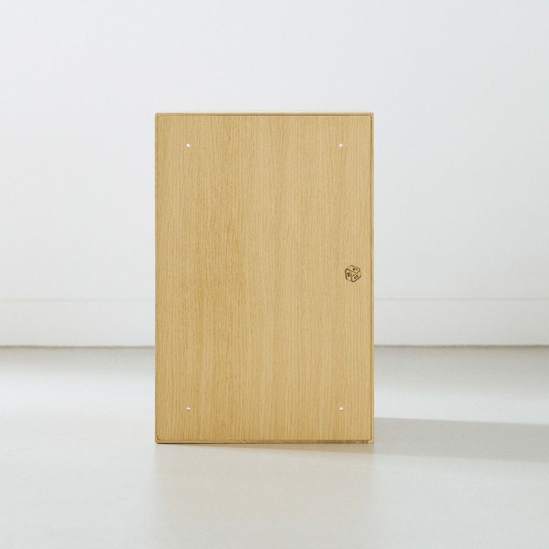 仕様素材:オーク材,仕上げ:ラッカー仕上げ,目安耐荷重:床置き(縦置き) 約50kg / 壁掛け 約30kg,背面:壁面取付け用ビス穴あり