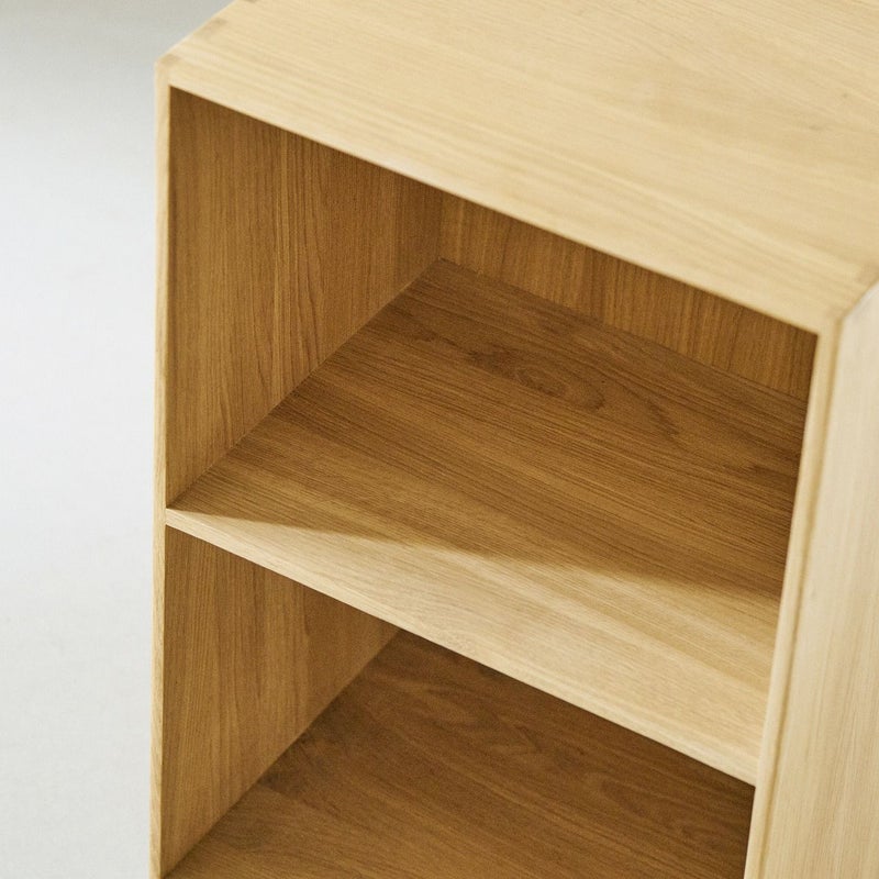 商品説明FDB初代プロダクトマネージャーとなるボーエ・モーエンセンが師事した、モーエンス・コッホは、自身のデザインスタジオに雇い入れて、デザインを教えます。それは後にボーエ・モーエンセンが作ったFDBモブラーの基盤となり、さらにデンマークデザインの発展に大きな影響を与えました。コッホのデザインする家具は自身のライフスタイルやニーズが反映して作らられており、自邸の小さな書斎に置く、フレキシブルに使用できる書棚として、これまでにいくつものデザインをしています。コッホは、FDBの開発条件「丈夫で、美しく、機能的、そして手軽な価格」の基、このBook caseをデザインしましが、このベーシックなデザイン、組み合わせて使える機能性は今数多くあるボックス型シェルフの基礎となっていると言えるでしょう。美しさとは、その物自体の見た目は勿論の事、実際に使った時に他のアイテムと調和でき、それぞれのテイストを損わないデザイン性があるもの。今ではたくさんの収納アイテムがありますが、半世紀も前の1944年にデザインされたものが、今ここに存在する理由。それはこのBook caseから感じることができます。縦横の比率が美しく設計され、程よいアールが施されたディテール、刻み組みつぎになった接合部はデザイン性もよく、それに負けないだけの強度もあります。大切にしている本や小物などを置いていただいた時、そこにひとつの空間が出来上がり、それぞれの世界観をしっかりと表現してくれ、大切なものをもっと大切に思える場所へと変えてくれる。その特別な空間があるだけで、視線に入った時やレイアウトを変えた時に感じる喜びや楽しみは、生活の一部となり、より一層心を豊かにしてくれます。このBookcaseは積み重ねて使う事で使い方の幅はより広がり、立体的な空間となってあなたの世界観を最大限に表現してくれる他、背板には壁掛として使用できるように、ビス穴の加工が施されているので、壁掛けシェルフとして、特別な空間を作り、あなたのお部屋を演出してくれます。