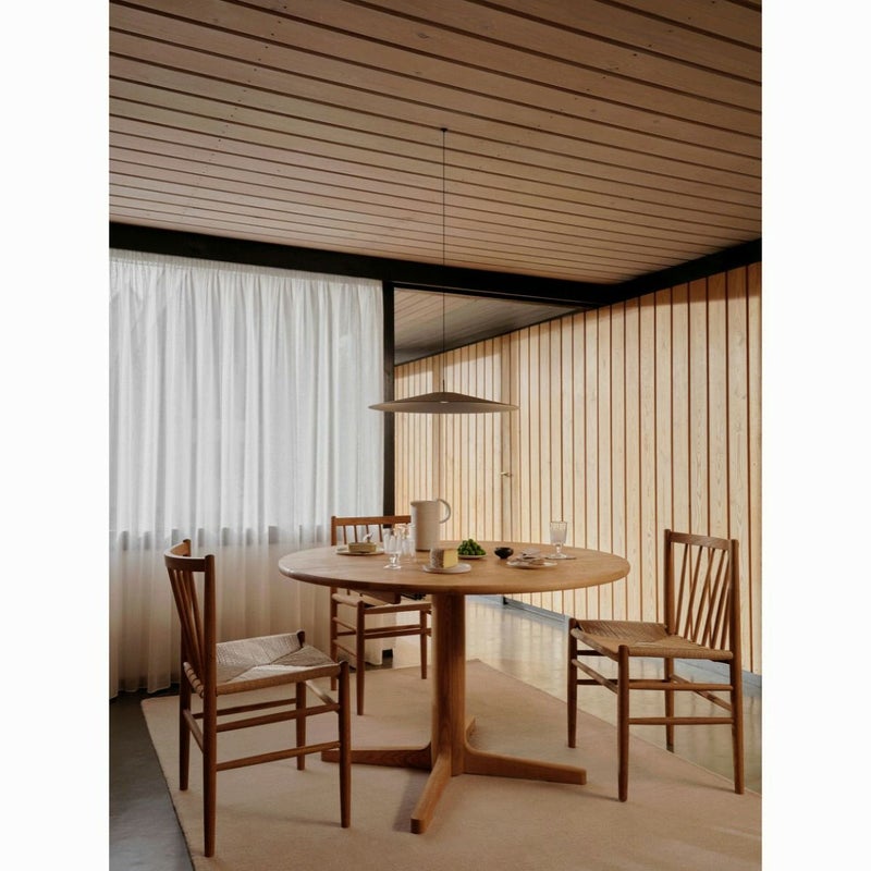 商品説明FDBモブラーの4代目、そして最後の代表を務めたヨーエン・ベックマークは、歴代でもっとも長く在任し、ブランドの後期を支えた重要な人物です。彼の在任中、デンマーク家具はアメリカを中心に国際的な人気を集めはじめており、ベックマークはその流れを受けて、分解・梱包・輸送がしやすい組み立て家具を多数開発しました。 その代表作がJ108ですが、J80はその流れとはまったく異なる思想で生まれたチェアです。J80最大の特徴は、モーエンセン以来採用されてこなかったペーパーコードの座面と、蒸気でひねりを加えたオーク材の背もたれ。これらを用いることで、細く美しい木部ながらも、軽量で柔らかく快適な座り心地を実現しています。 デザイン性だけでなく、日常使いを意識した設計もJ80の魅力。機能美と使いやすさを兼ね備えたこのチェアは、幅広い層から支持を集め、FDBモブラーの後期を代表する名作となりました。