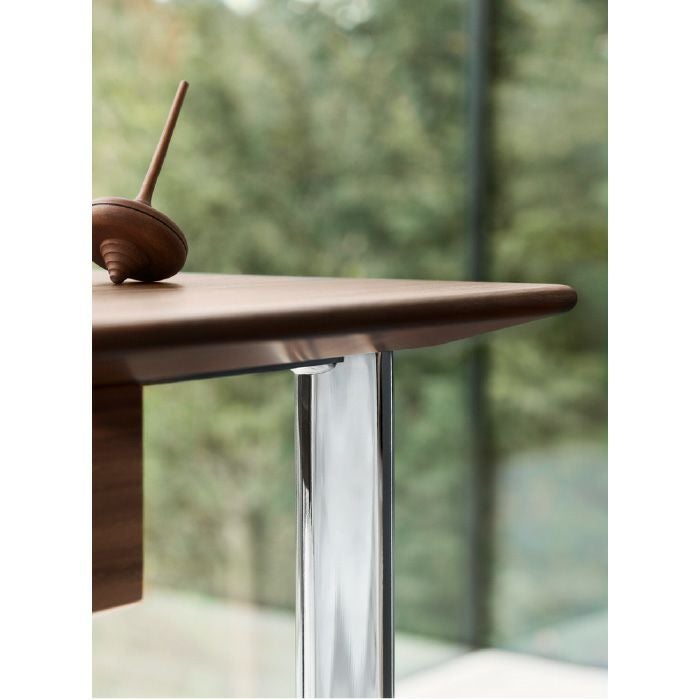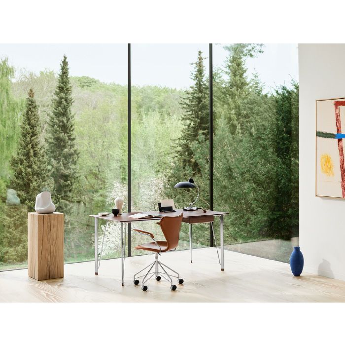 商品説明1955年にアルネ・ヤコブセンがデザインし、フリッツ・ハンセンが製造したFH3605は、考え抜かれたフォルムと実用的なディテールによって、カジュアルでありながらも特別感のあるワーキングスペースづくりを叶えるデスクです。復刻されたFH3605は、ウォルナット材とブラックカラードアッシュの2種類のテーブルトップと、クロームまたは粉体塗装仕上げを施したブラックのスチールの2種類のベースからお選びいただけます。無垢材を使用した書類用のドロワー(オプション)は、テーブルトップと同じく2種類から選ぶことができ、ニーズに合ったカスタマイズが可能です。