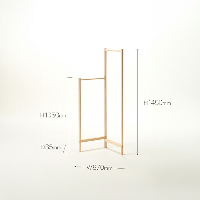 さっとアウターやバッグなどが掛けられるコンパクトな衣桁です。高さ違いの2連のバーは、圧迫感のない女性の目線ほどの高さと、ちょうど腰のあたりの高さの組み合わせで使い道はいろいろ。