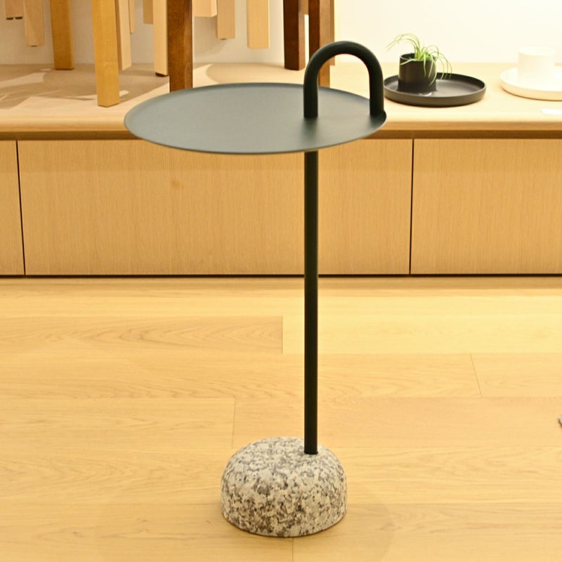 商品説明シェーン・シュネックがデザインした、コンパクトなサイドテーブルです。デザインの特徴でもある、上向きに伸びる1本の支柱は、持ち運ぶ際のハンドルとしても機能します。コーヒーテーブルやサイドテーブルとしてお使いいただけます。支柱、ハンドル、トレイは粉体塗装スチール製で、丈夫な花崗岩を台座にすることで安定性を叶えながらも、持ち運べるほど軽量で、組立ても簡単な仕様になっています。