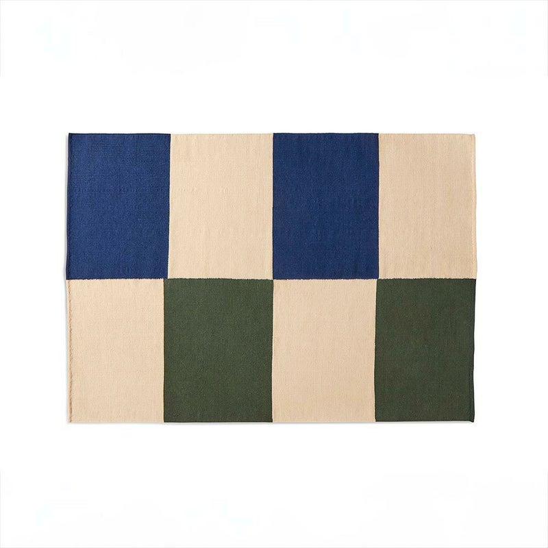 商品説明イーサン・クックがHAYのためにデザインしたFLAT WORKSは、自身の織物によるウォールアートからインスピレーションを得た、手織りのキリムラグです。 抽象的な幾何学模様が特徴のこのラグは、大胆なカラーブロックを使ったデザイナーのアートワークを実用的なインテリアアイテムに落とし込んだもの。 ニュージーランド産の綿混ウールを使い、染色と織りの工程によってそれぞれに一点物のようなユニークな表情を持たせました。 ベッドルームや玄関、リビングなどのインテリアスペースにおすすめです。