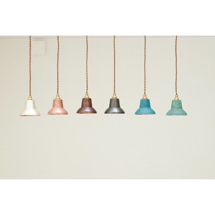 商品説明暮らしに溶け込む銅の道具シリーズ "tone (トーン)"デニムを履き込むように使うごとに素材感を増していきます。絞り加工で成型し着色を施したペンダントライト。内側を磨きだすことであたたかな光を演出します。