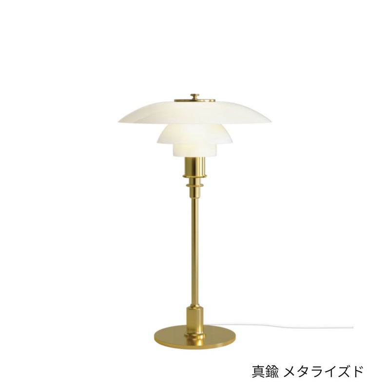 商品説明1925年から1926年にかけて、ポール・ヘニングセンは3枚シェードのシステムによる照明器具を開発しました。PHの最初の複数シェードのランプは、パリで開催された展覧会のために、ルイスポールセンと共同でデザインされました。両者のパートナーシップは、ヘニングセンが亡くなる1967年まで続きました。グレア・フリーの光(眩しさの除去)、明るさが最も必要とされる場所に光を届けること、同時に柔らかい影をつくりだすこと。これらが、生涯を通じてPHが追及した重要テーマで、その光源は当時の白熱電球でした。今日、3枚シェードのPHシリーズには屋外用の3種を含む18種類のランプがあり、PH 3/2 テーブルランプもそのひとつです。PHが設計したのは単なるランプではなく、包括的な照明システムであり、長年にわたり1000種にわたるモデルが生まれました。そこにはウォールランプ、テーブルランプ、フロアランプはもとより、天井の高い住宅用として1930年代にポピュラーとなったシャンデリアの数々も含まれます。たくさんの組み合わせやオプションもありました。色やサイズのヴァリエーションも豊富でした。初期のシェードは金属製で、内側を白、ゴールド、シルバーなどで塗装し、拡散する光、温かみのある光、クールな光など、使用場所に応じて仕上げを選択するようになっていました。その後、3枚シェードシステムにガラスが加わりました。乳白ガラスのシェードは、光を下方に集めると同時に、程よく部屋の上方も照らしだしました。PHは、照明器具のデザインに科学的アプローチを採用し、シェードの曲線に対数螺旋を使用した最初の人物でした。対数螺旋に基づくデザインを採用することで、シェードの曲面全体にわたってなだらかな配光を得ることに成功したのです。このなだらかな配光は、シェード内面が反射する拡散光と合わさって、グレアと影のコントロールを可能にしました。各シェードが反射する光量は、光源との距離が大きくなるにつれ均等に減少します。PH ランプのモデル番号は、シェードのサイズを表しています。最初の数字はトップ・シェードのサイズ(直径)を表し、次の数字はミドル・シェードと下部シェードのセットを表します。2/2というような「原型」モデルでは、直径約20 cmのトップ・シェードに、それに対応するミドル+下部シェードがセットされています。PH 3/2 テーブルランプは、直径約 30 cm のトップ・シェードに、 2/2 モデルのミドル+下部シェードのセットを組み合わせています。このような「ハイブリッド」モデルは、ペンダントを低く吊るしたいという要望に応えてデザインされました。そのシステムは、テーブルランプ、フロアランプ、ウォールランプに使用されています。