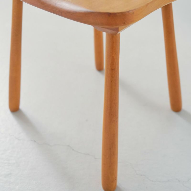 商品説明やわらかな曲線を描く背もたれと、ナチュラルなビーチ材の風合いが魅力の北欧ヴィンテージ・フープバックチェア。背中を包み込むような丸みのあるシルエットが、どこか愛らしい佇まいです。 特徴的なのは、脚先に向かってほんのり太くなる脚のデザイン。安定感を生み出しつつ、温かみのあるユニークなアクセントにもなっています。 軽やかな印象ながらしっかりとした作りで、ダイニングだけでなくデスクチェアやサイドチェアとしても活躍。素朴で上品な北欧らしさを感じられる一脚です。 細かいキズなどはありますが、がたつきなどはありません。