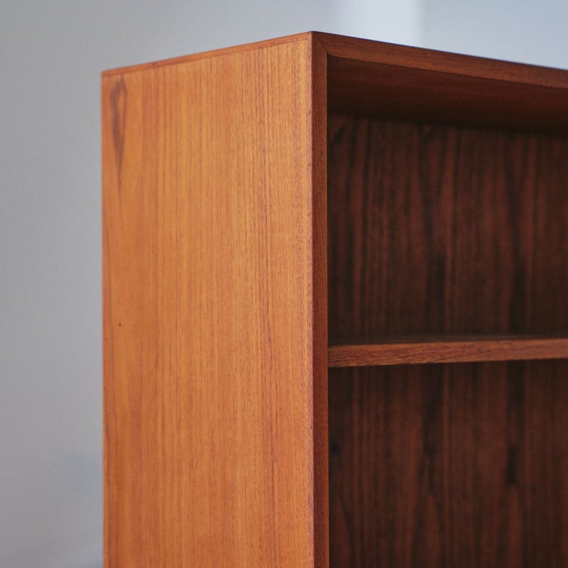 商品説明あたたかみのあるチーク材を使った、北欧ヴィンテージのシンプルなブックケース。本棚としてはもちろん、小物や雑誌、オブジェなどのディスプレイにもぴったりです。 シンプルで飽きのこないデザインですが縁取りなどにこだわりのある、北欧ヴィンテージらしい造りです。チーク材の美しい木目とオイル仕上げの自然なツヤが空間に柔らかさを添えてくれます。 奥行きが浅めなので場所をとらず、リビングや寝室、玄関などさまざまなシーンで活躍してくれる一台。シンプルだからこそ、暮らしに自然と溶け込むヴィンテージ家具です。 棚板は15段階の高さの調節が可能です。側面には、印象的な木目が入っており一点ものならではの個性を楽しめます。 細かいキズはありますがとても良いコンディションです。 ※オイル仕上げの家具は、自然な風合いが魅力ですが、水分によって輪ジミができることがございます。グラスや花瓶を置く際はクロス等をご使用いただくことで、美しい状態を保てます。