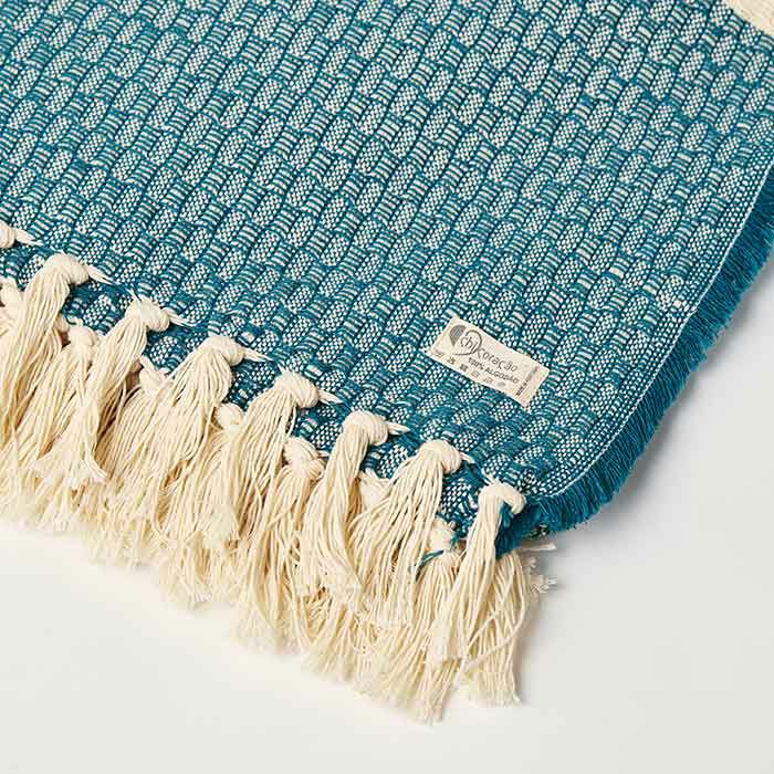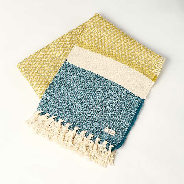 数量限定アウトレット特価 CHICORACAO(シ・コラサォン)/Mira(ミラ)/コットンブランケット/yellow & oil blue/150x180cm【OUTLET】