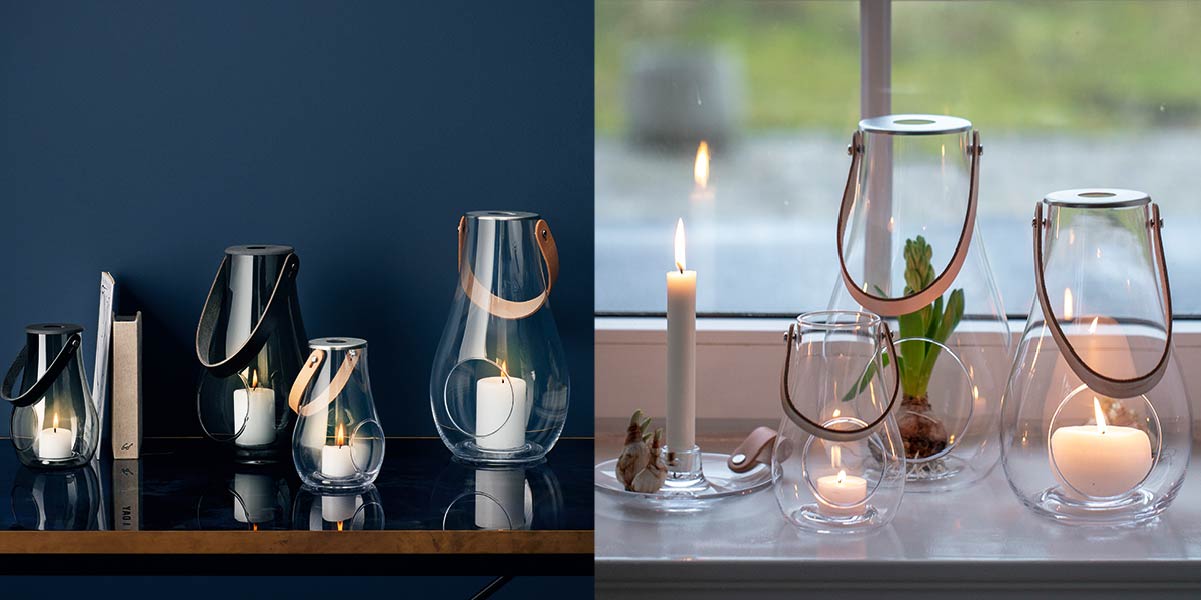 HOLMEGAARDのガラスランタンは、ハンドル付きで持ち運びも簡単。 シンプルで洗練されたデザインは、リビングにもテラスにも映え、日常を彩る灯りのアクセントに最適です。